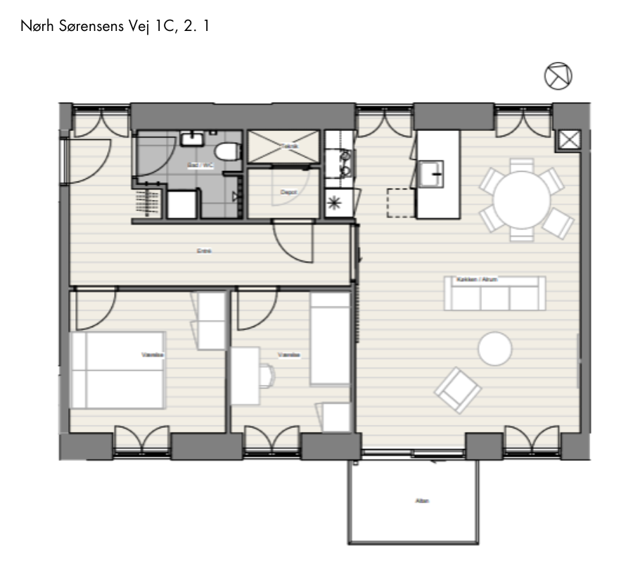 Imponerende 3 værelses lejlighed på 91m2, hvor det åbne køkkenalrum og den store stue skaber et indbydende opholdsområde. Nyd solrige stunder på den private 5m2 altan. Lejligheden indeholder et disponible opbevaringsrum til praktisk opbevaring.