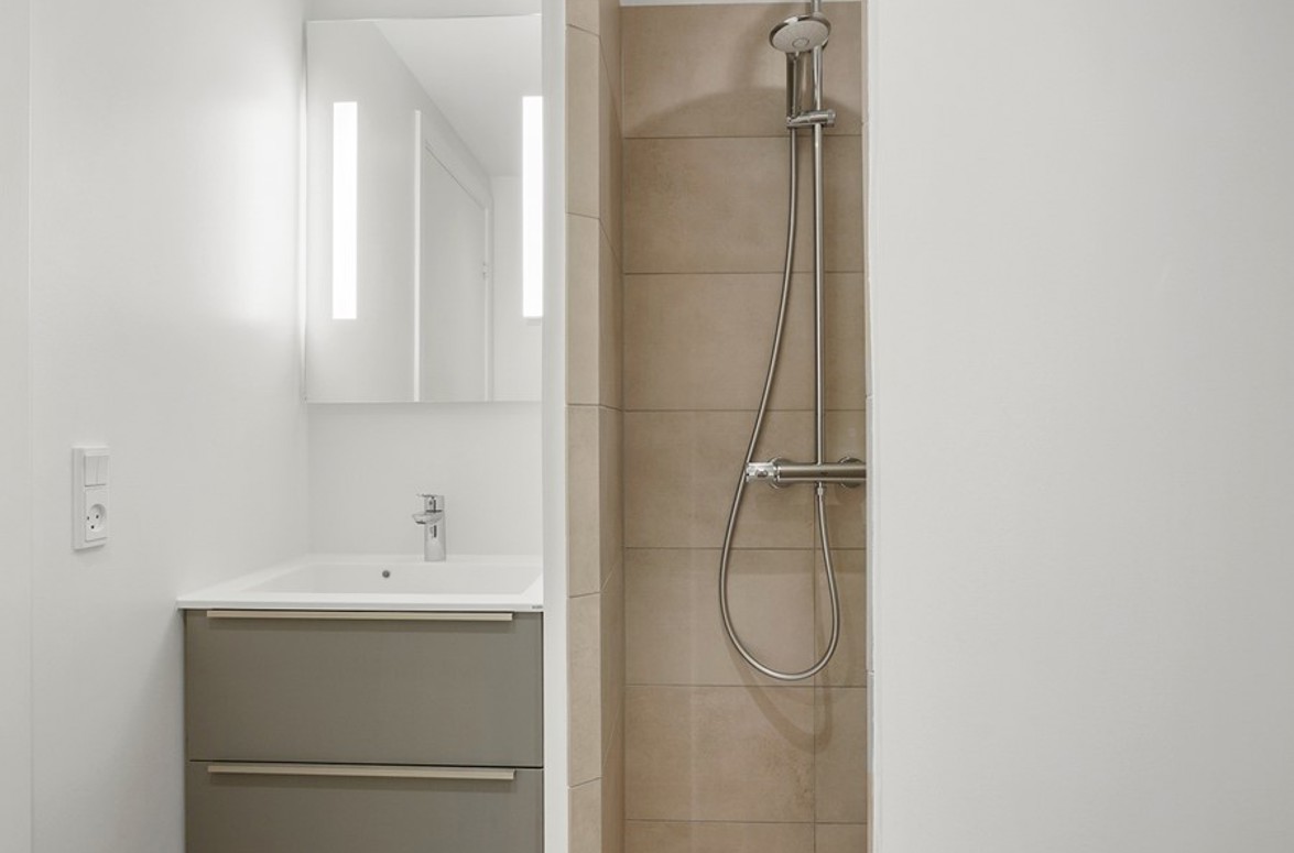 Fra stue/køkkenalrum er der direkte udgang til egen altan eller terrasse, hvor du kan nyde udsigten over østerådalen. Og med en beliggenhed kun 5 min. fra Aalborg centrum, supermarkeder, Aalborg Universitet og speciebutikker med delikatesser, er alle dine daglige fornødenheder lige uden for døren.
