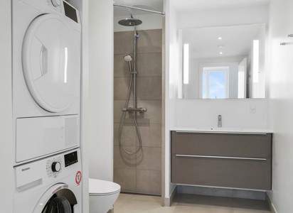 Hver lejlighed har som minimum en altan, nogle har to, og andre har både altan og privat terrasse. Gennemgående for ejendommen er kvalitet med lækre indretningsmuligheder, alt i hårde hvidevarer, gulvvarme, ventilationsanlæg, mulig at leje privat parkeringsplads i parkeringskælderen og sublime fællesarealer.